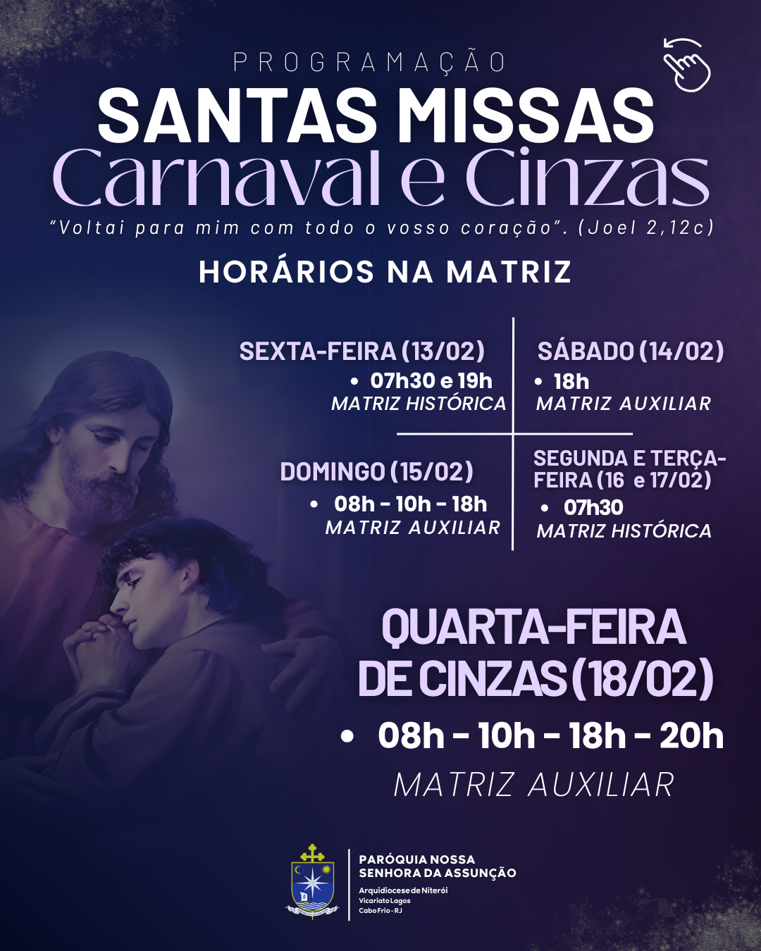 Programação das Santas Missas de Carnaval e Cinzas!
