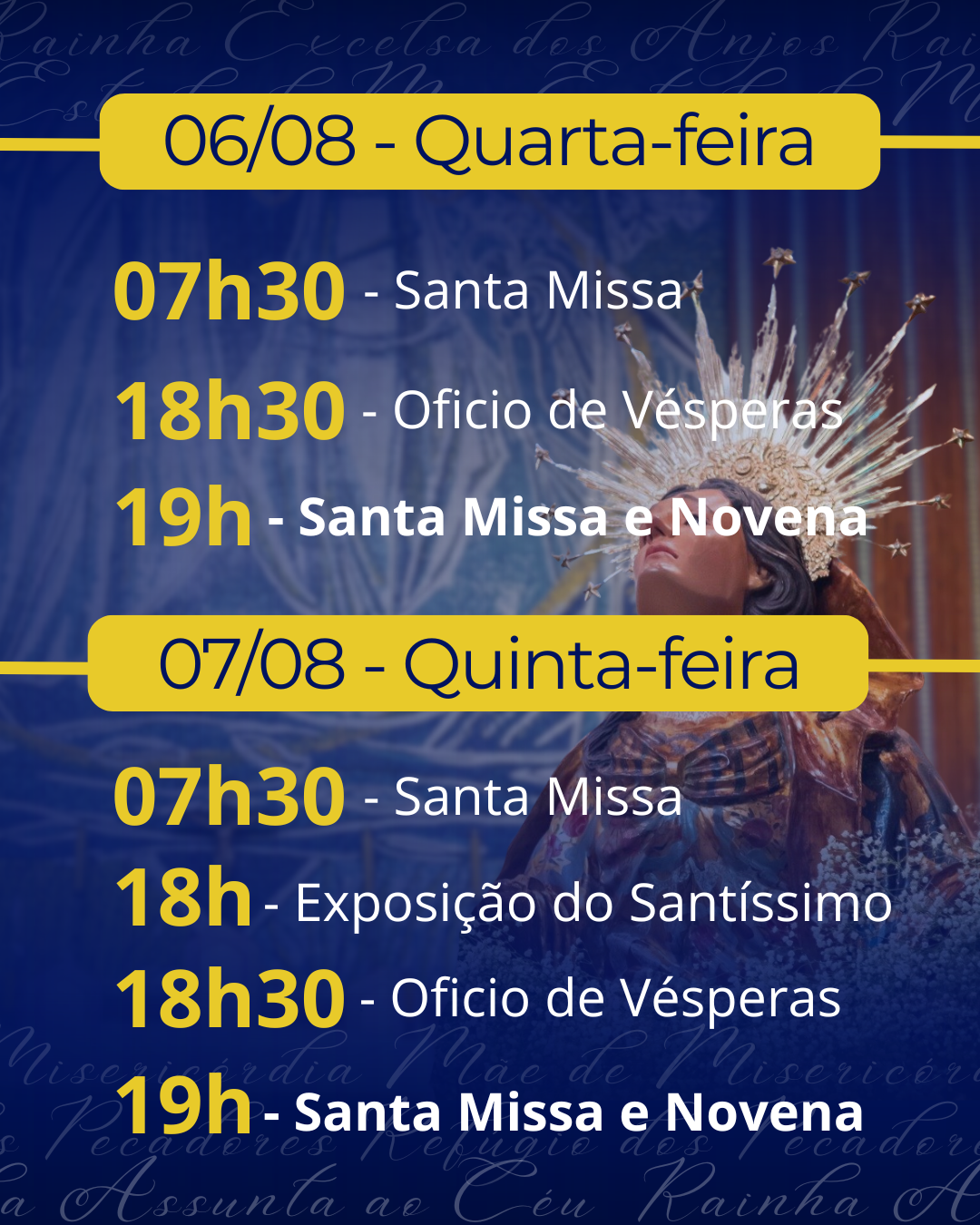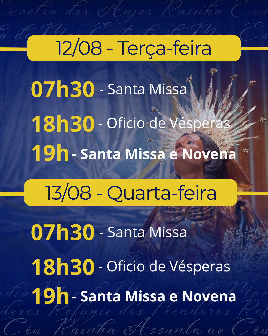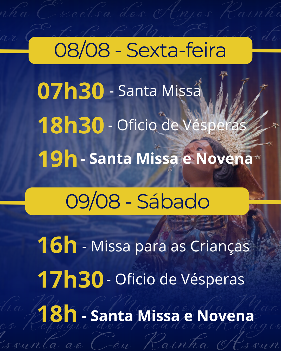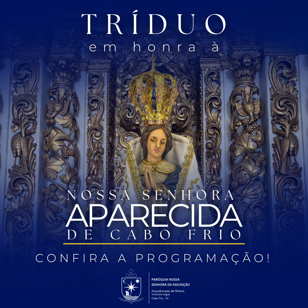 É uma alegria sem igual para a nossa paróquia recorrermos à intercessão da Virgem Maria, sob o título de Imaculada Conceição Aparecida de Cabo Frio. Para bem celebrarmos essa solenidade, viveremos em nossa comunidade o tríduo em sua honra. Participe conosco!!