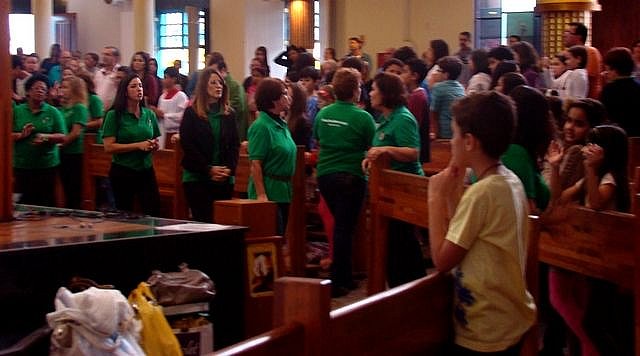 Crianças e pais da catequese paroquial homenagearam os Catequistas no último final de semana de agosto.