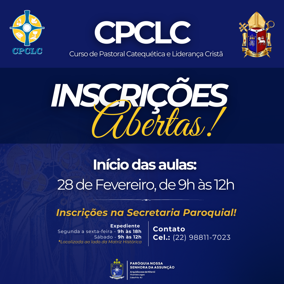 Estão abertas as inscrições para o CPCLC - Curso de Pastoral Catequética e Liderança Cristã!