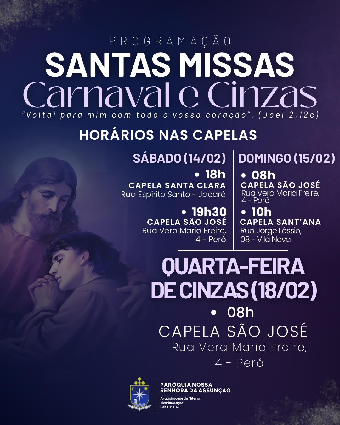 Programação das Santas Missas de Carnaval e Cinzas!