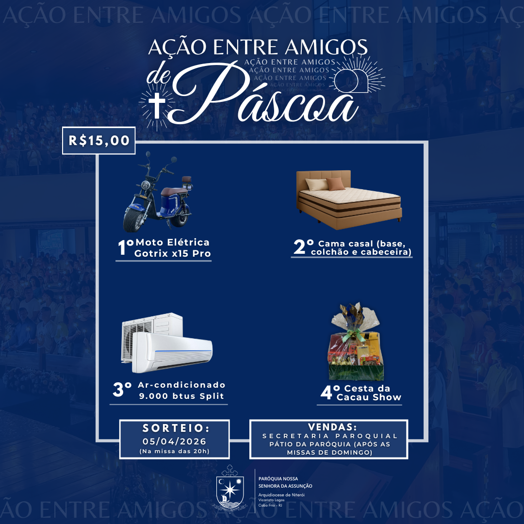 📅 Sorteio: Domingo de Páscoa (05/04), após a Missa das 20h.