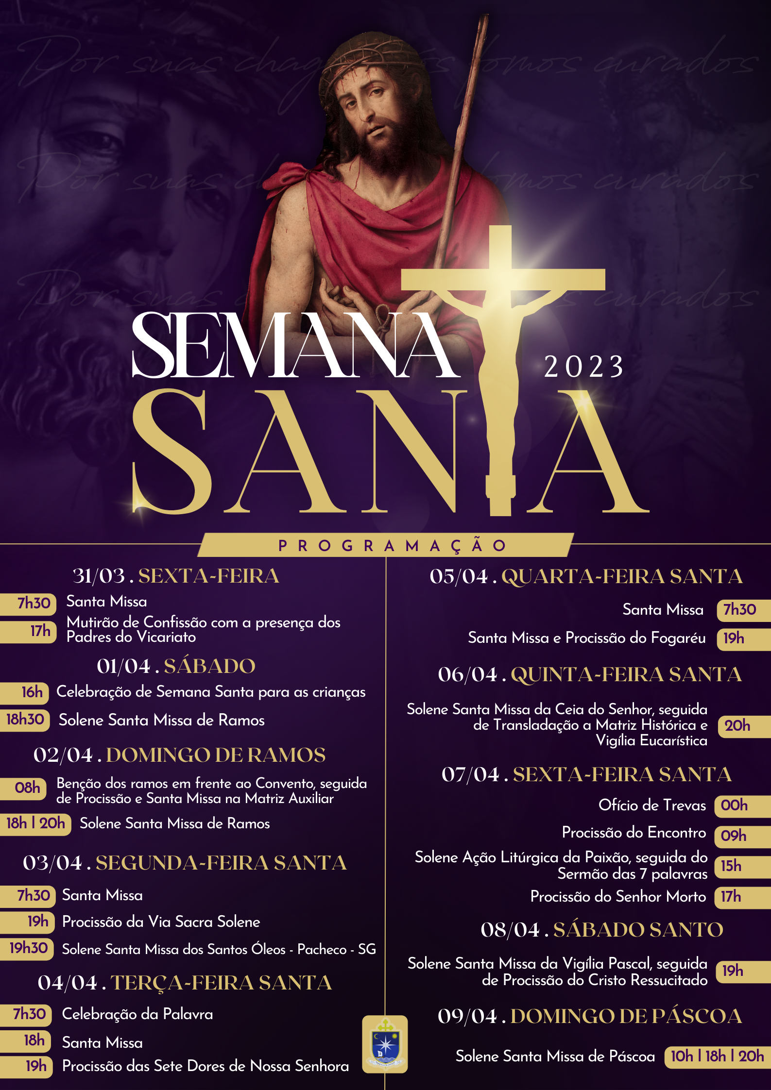 A seguir, a nossa programação da Semana Santa para este ano de 2023.