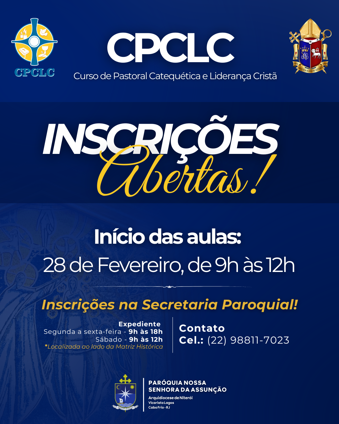 Estão abertas as inscrições para o CPCLC - Curso de Pastoral Catequética e Liderança Cristã!