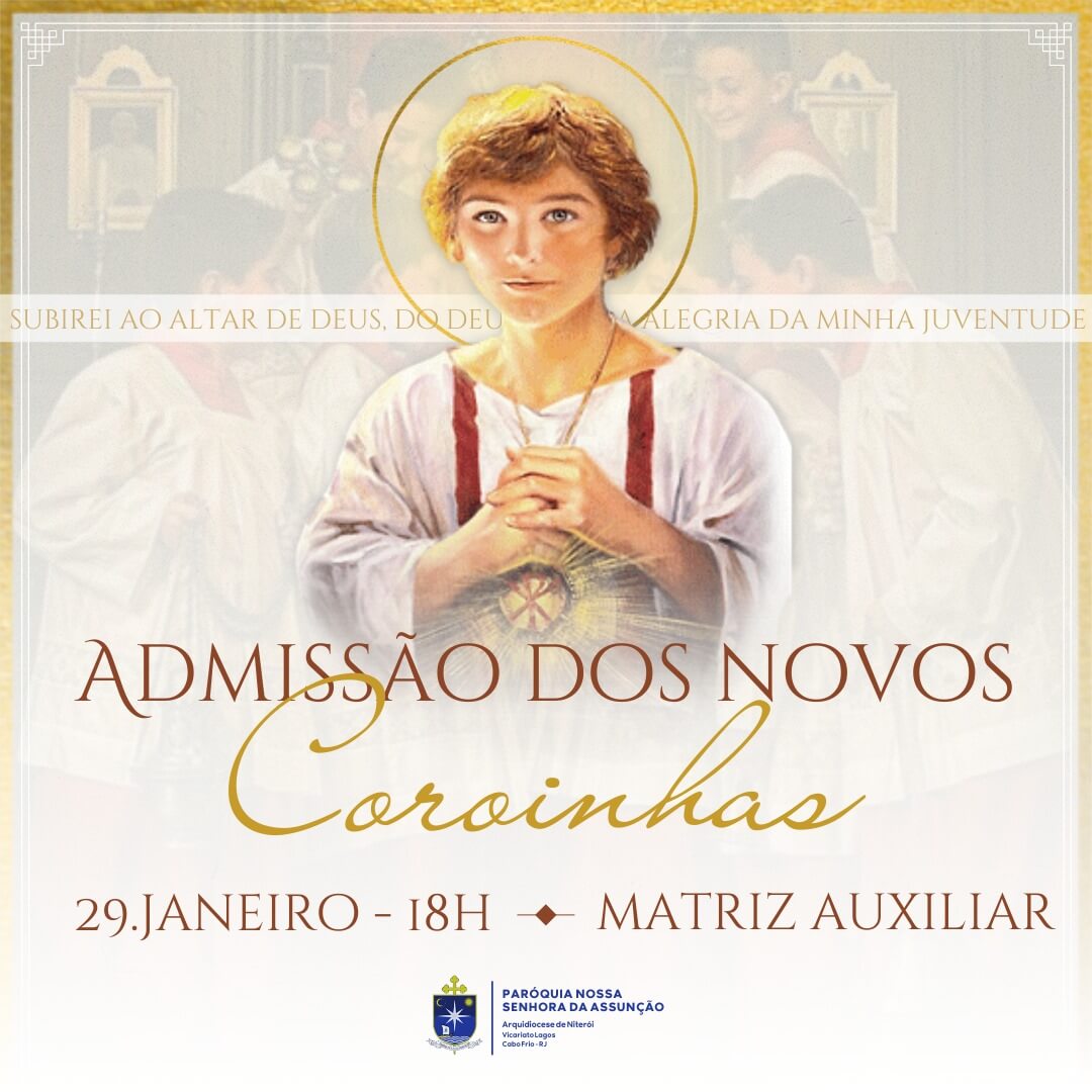 Caros irmãos, nossa Paróquia irá acolher mais alguns jovens como servidores do altar de Jesus. Convidamos a todos para participarem deste momento de alegria para a nossa comunidade paroquial.