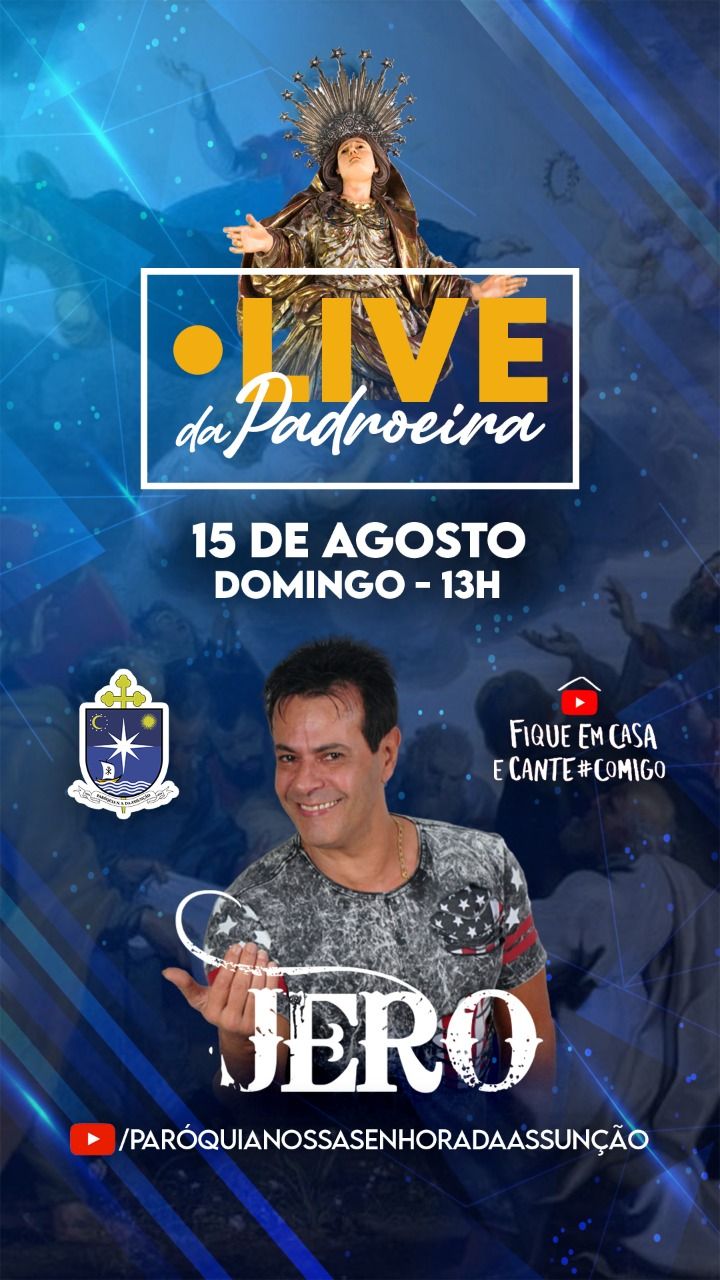 Para acompanhar o seu almoço, preparamos uma live muito especial para o dia da padroeira. Com muita honra convidamos o Jero e sua equipe para abrilhantar a tarde do seu domingo. Acompanhe, compartilhe e fique ao som da boa música, celebrando a Padroeira Nossa Senhora da Assunção.